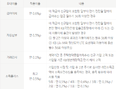 - 신규가입일 당시 영업점 미 KB국민은행 홈페이지에 게시한 우대이율을 적용